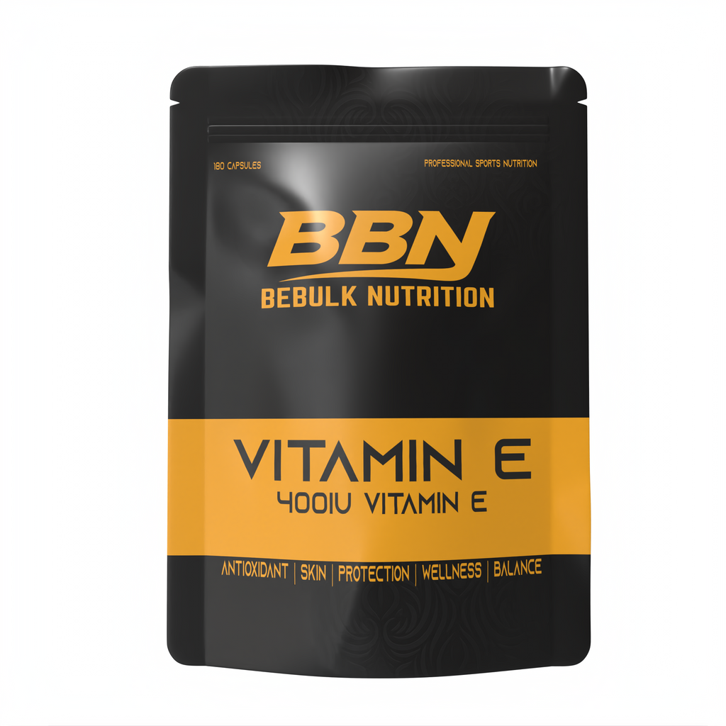 Vitamine E 400 IU – Softgels – BeBulk Nutrition bevat vitamine E in de vorm van d-alfa-tocoferol, verpakt in gemakkelijk in te nemen softgels.